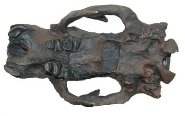 This Megalonyx jeffersonii ground sloth adult skull is a high-quality cast replica molded from original fossils discovered in Florida.