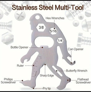 Bigfoot Tool: 1pc Stainless Steel Outdoor Backpack Keychain, Multifunctional Monkey & Sasquatch Shaped Tool Card