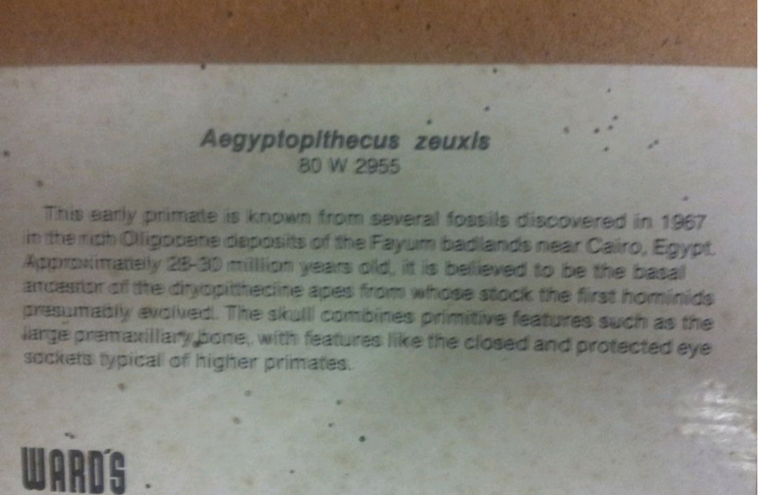 Aegyptopithecus profile skull cast replica