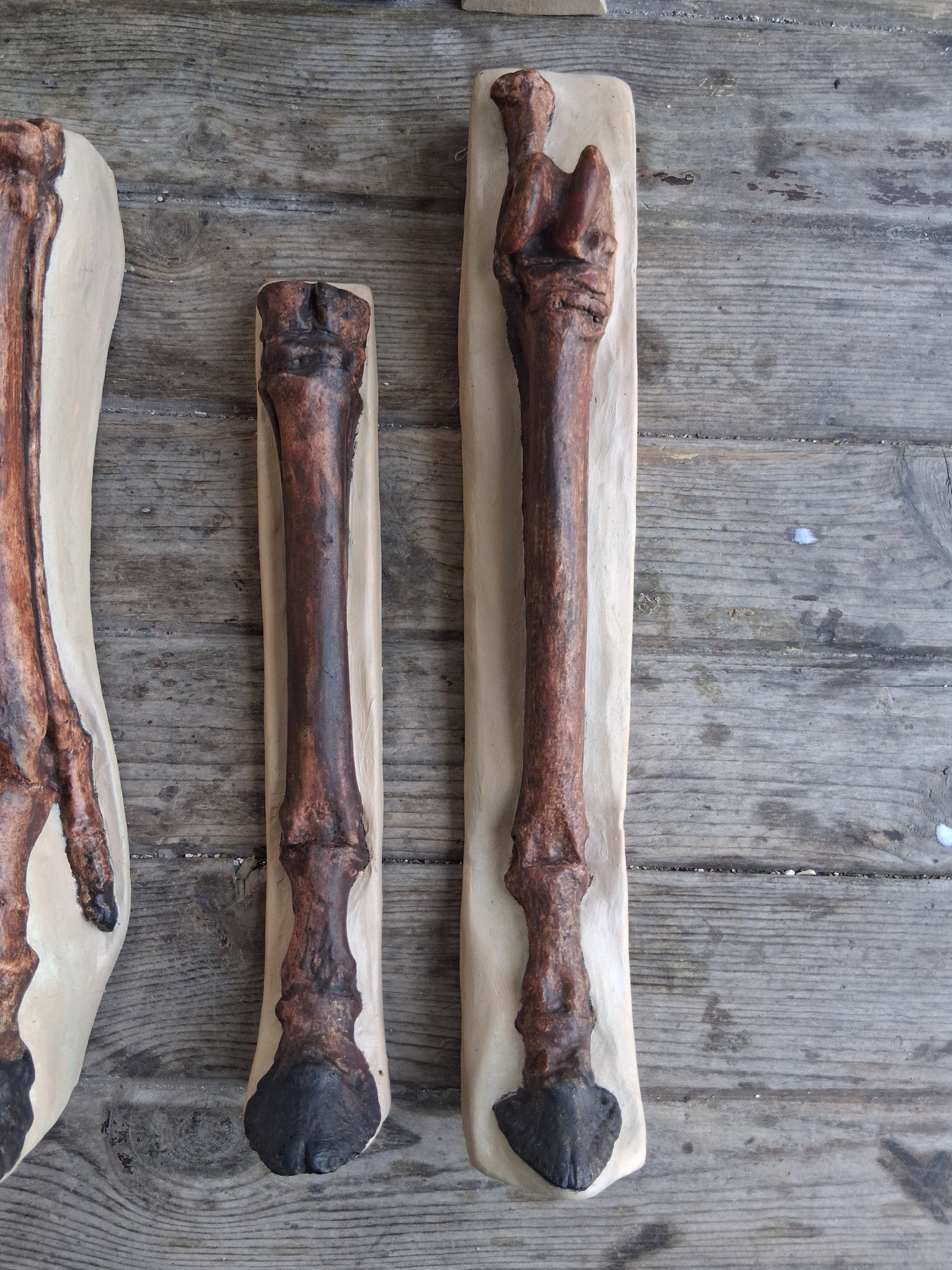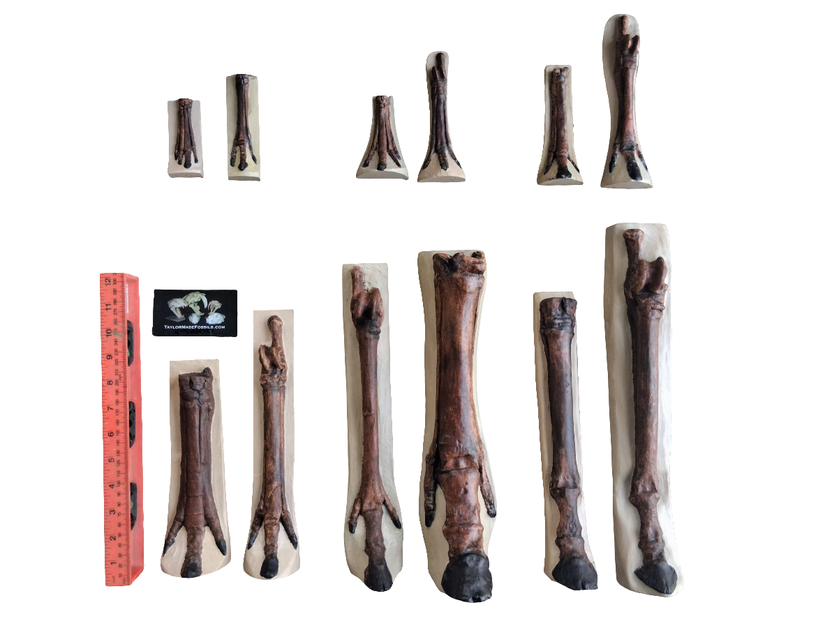 The most complete fossil horse leg set anywhere. Teaching quality set of 12 casts (6 forefeet and 6 hindfeet)